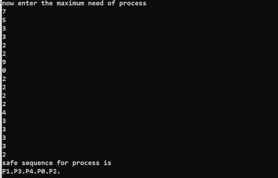 IN order to implement this we are going to make use c programming language. lets first discuss about algorithm to find the safe sequence